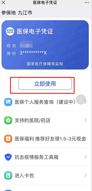 其次:點擊“立(lì)即使用”後顯示動(dòng)態電子醫保憑證,進行掃碼就醫。