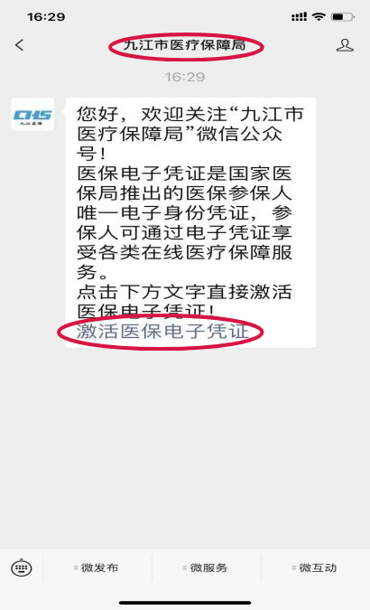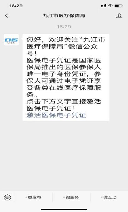 第(dì)一步:微信搜索“九江市醫療保障局”公眾號並關注,點擊“激活醫保電子憑證(zhèng)”